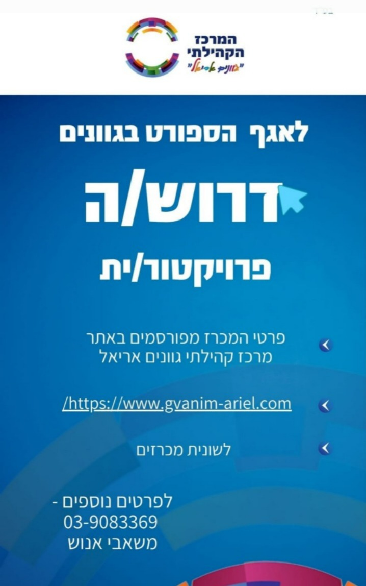 קורות חיים, המלצות ותעודות רלוונטיות יש לשלוח בדוא"ל gvanim@gvanim-ariel.com