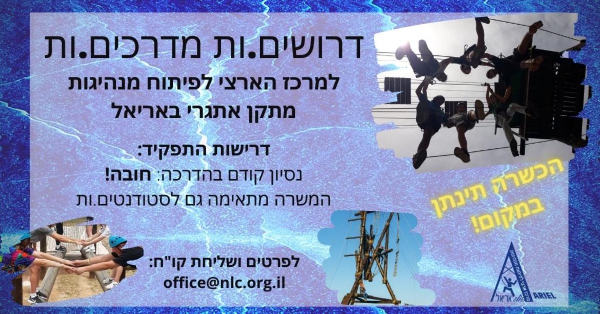 דרושים/ות מדריכים/ות למרכז הארצי לפיתוח מנהיגות, מתקן חבלים אתגרי בעיר אריאל